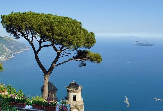 Just close your eyes and try imagine the feeling of the white sand under your feet, the hypnotic noise of the frothy waves crashing on the rocky Amalfi cliffs, the refreshing smell of our lemons, the incredible colors of the majolicas in our beautiful little churches by the sea, the bright sound of our traditional music, with its bubbly guitars, mandolins and tambourines. We bet that you can probably already see yourself all dressed up for your special day, having your pictures and videos taken and shot by our professional wedding photographers, standing on the world-renowned Terrace of Infinity of Villa Cimbrone, famous not only for its breathtaking view over the Tyrrhenian Sea, but also for its timeless elegance. Many stars got married there, including actors Lizzy Caplan and Tom Riley of “Da Vinci’s Demons” fame.