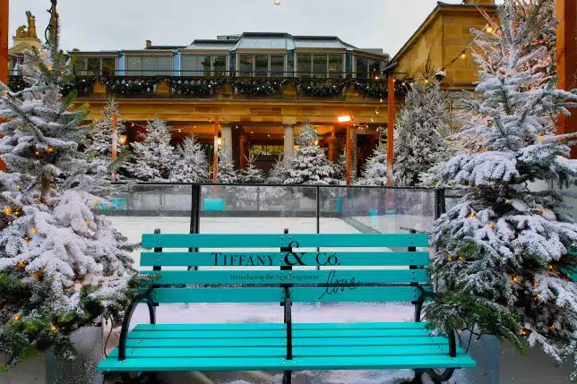 Glide your way into a New York state of mind at the East Piazza of Covent Garden this year, where there’s a NYC-style rink surrounded by outsized jewellery boxes, centred on a huge snow globe-covered perfume bottle, and scented by Tiffany’s signature scent.