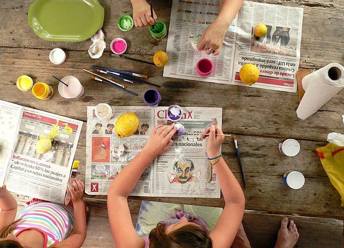 Few children’s activities are quite as time-consuming as arts and crafts, especially while on a trip. Therefore, you may want to bring some art supplies on your vacation. When it’s time for a break, find a quiet and stable area for your kid. Once that’s accomplished, you can sit back and watch your child create art. Be sure that the project isn’t too messy, especially if you’re in a public setting. Laying down a tarp or cloth is a good way to minimize mess, along with avoiding materials like glitter.