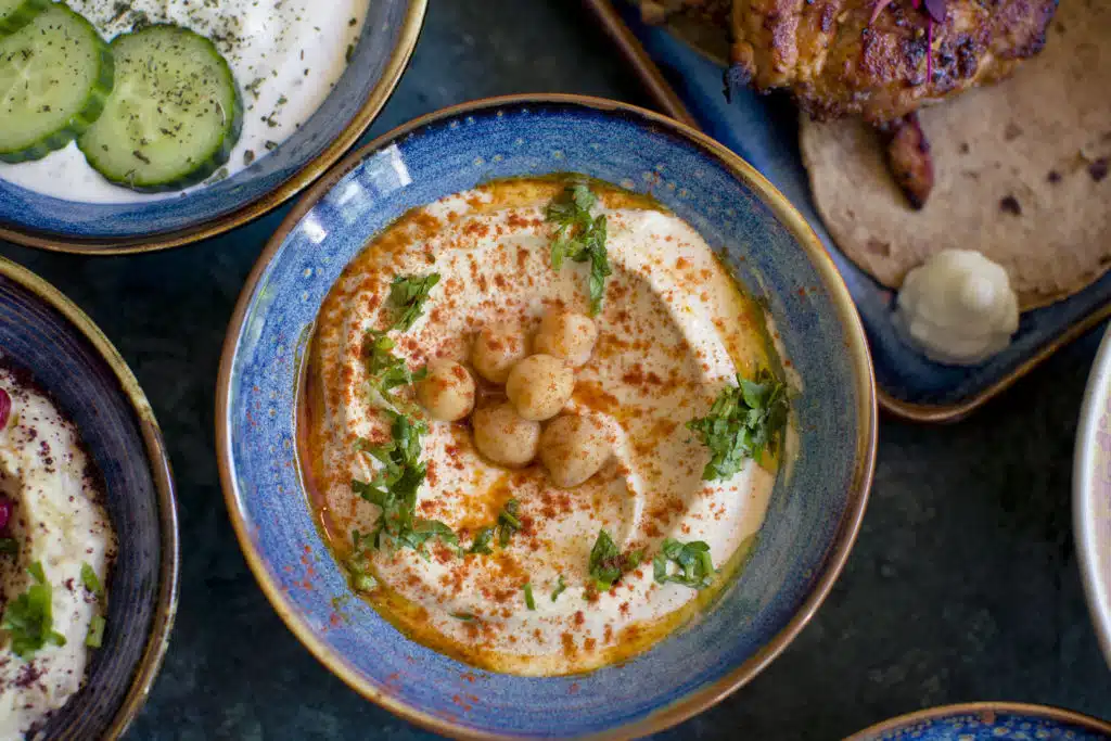 Service is attentive and friendly, no pretensions, with staff very happy to recommend dishes. It’s a mezze style menu with starters organised into cold and hot before going ‘On Grill’. I instantly want to order everything and we, perhaps ambitiously, choose four starters and two mains. Food arrives promptly and beautifully presented in colourful ceramic bowls. We opt for food ‘as it comes’ and our table is soon crowded with delicacies. First up, hummus, because, if you can’t get hummus right, what hope is there for everything else? Fortunately, it’s creamy, served with a sprinkling of paprika, a drizzle of olive oil and warm flatbreads. Aubergine moussaka, my favourite dish, is a generous serving of tender aubergine blended in a rich tomato sauce, which in my opinion goes with everything on the menu, whether it’s pulled beef, falafel or halloumi.