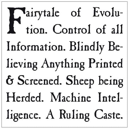 “this particular piece of work came about while putting together promotional stickers for my books. although those stickers have meanwhile been doing a good job unlocking people’s awareness about the real extent of deception executed by the so-called ‘media’, there still seemed to be a big gap between levels that makes my work beyond comprehension for most. the series of 12 poems tries to tackle this problem. interspersed with the visual snippets as a reading aid and tonal backdrop, they can be decoded on each individual’s own terms, according to their level of knowledge and their desire to ‘see’.”