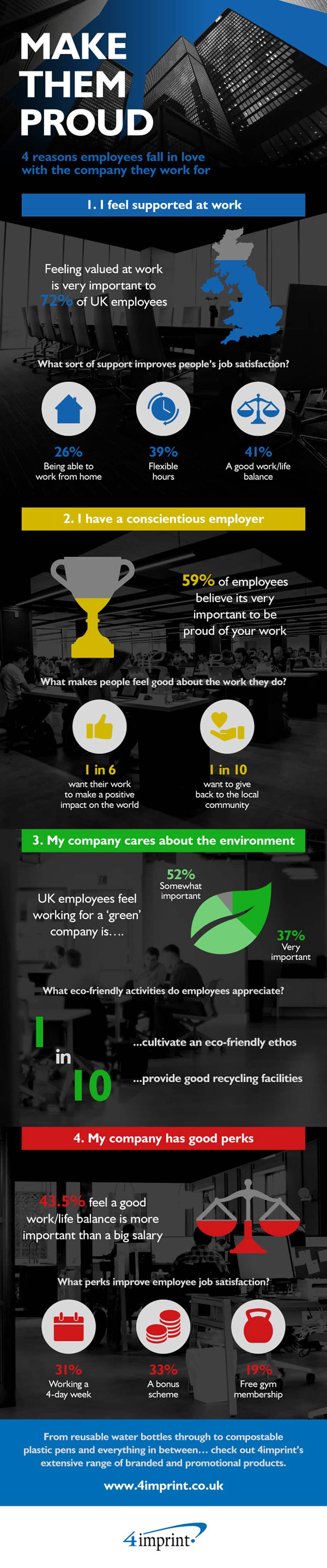 It is, therefore, in the interests of all business owners to focus on employee satisfaction and do what they can to boost morale in the workplace. New research by 4imprint.co.uk found that business sustainability is a key factor in employee retention, and a sustainable business is in a stronger position to attract and retain the best staff. As you can see from the below infographic, 1 in 6 employees want their work to make a positive impact on the world, and 87% of people feel that it’s important to work for a green company. This suggests that adopting sustainable practices is an effective way to boost morale in the workplace.