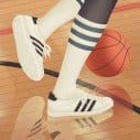 Three innovative illustrators have taken on board the life of the Superstar, to come up with imagery that brings to life the history of the basketball trainer. The three images focus on one each of the key elements of the shoe design, sharing an art deco feel, using solid colours – oranges, black, whites, reds to bring out the heritage of the Superstar shoe.