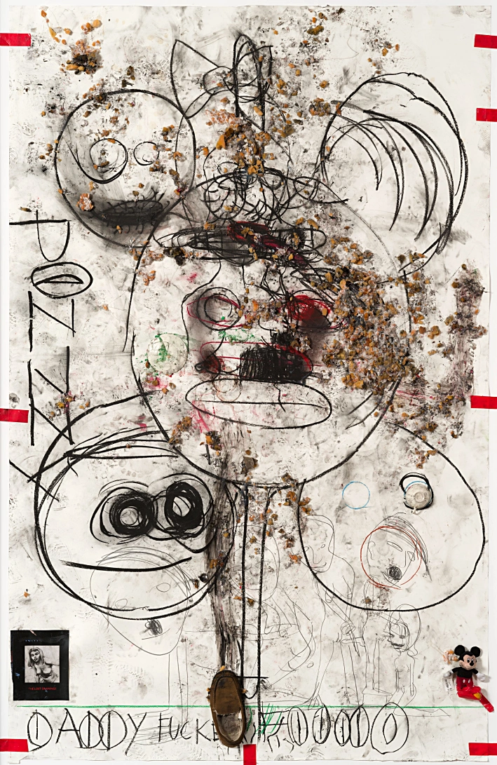 On view until 16 May, the exhibition brings together large-scale drawings and performance videos drawn from unscripted sessions between McCarthy and German actress Lilith Stangenberg. The result is raw, excessive and deliberately destabilising.