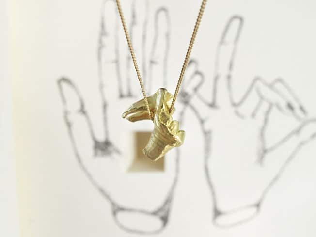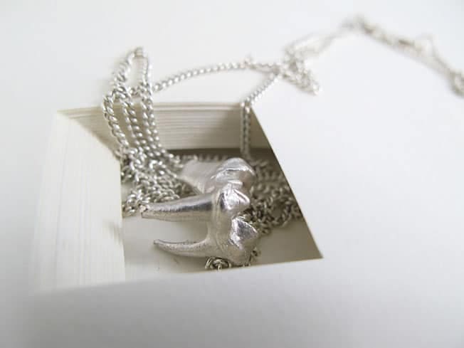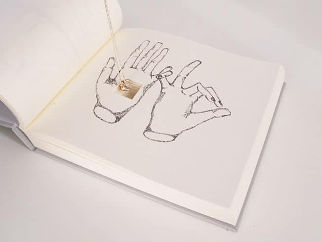 The jewellery is ultimately sculptural, sensitive and raw. And this is reflected in her drawings and ink artworks that intersperse seamlessly with her jewellery pieces, like uncovering a series of artifacts from a dimly lit, secret fairy tale.You only need to take a look through her amazing hardback book created with die cut hidden compartments in which Alice has hidden a series of gold cast teeth on chains amongst ink and watercolour prints. Everything Alice produces has a fragile, raw beauty.