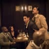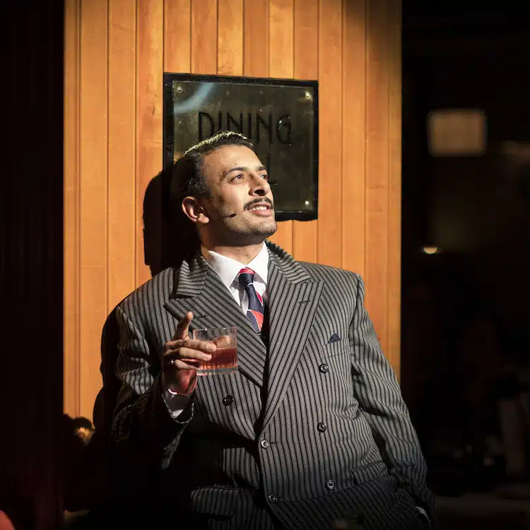 It’s a clever way of immediately pulling the audience into the action, an interactivity which is sustained throughout the performance. Romesh (Raj Aich), the inspector’s bitter deputy, struts up and down the tables, sneering at his old classmate Cyrus and even squeezing himself into a booth of bow-tied diners, elbows on the table, full of contempt.