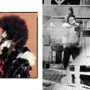 Left: jacket by H&M, folded collar by Niels Brinkman, flower corsage Stylist’s Own; Right: leather armor by Niels Brinkman, jeans by Annebel de Kok, shoes by Annebel de Kok, hat by Ca4 | a, flower corsage + feathers Stylist’s Own,