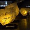 Migration and identity are recurring themes in the work of Indian multimedia artist Owais Husain. His Heart of Silence installation features three large paper houses, lit from within. Husain chose the form of the house as a universal symbol of identity. Each house is suspended, quiet and glowing with a warm, inviting light yet they are upside down – suggesting they have been overturned by some form of violence, catastrophe or displacement.