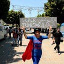 Staged visual identities are also celebrated. When authentic representation is absent, individual voices make themselves known in striking and surprising ways. Stacey’s own work places two near-identical films opposite each other in a confrontational way. Fedhila’s photography and film, meanwhile, causes the most discussion. Entitled Super Tunisian, Fedhila herself performs in a superman costume, asking ordinary Tunisians to ‘vote’ for a super-Tunisia. In an atmosphere of tension and anticipation, Fedhila’s performance brings a peacefulness and amusement which is much-needed. And by bringing the visual language of heroism to the streets of Tunis, Fedhila neatly connects the democratic process with the potential for a true human greatness to emerge.