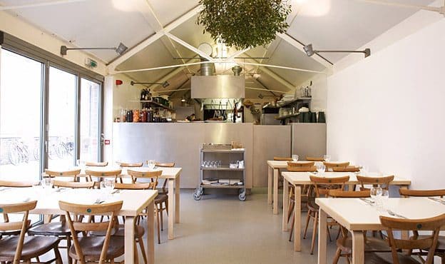 Ingredients are fresh and seasonal or, as Margot poetically phrases it, ‘we live by the seasons.’ Melanie and Margot started out running The French House Dining Room in Soho with their children running around them whilst they worked. The canteen continues to be family-orientated: ‘we started out here with just one big table.’