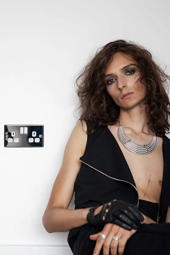 jumpsuit by Under, glove stylist's own, necklace stylist's own