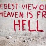 In the treacherous heat of Helmand Province, a civilian photographer stumbles upon a chilling piece of graffiti, emblazoned across the wall of a captured building. The building is acting as a HQ for ISAF troops. The blood red scrawl is a stark contrast to the dirt and dust that surrounds it. It reads, ‘THE BEST VIEW OF HEAVEN IS FROM HELL!’ Framed by a firearm that casually leans up against the same wall, the photographer captures the harrowing statement. This snapshot later not only provides the title for, but inspires a whole body of work by, photographer – Bran Symondson.