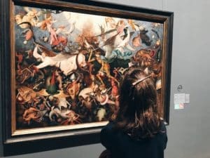 Before I arrived I didn’t care much for Bruegel. His scenes are dark and heavily detailed, sprinkled with allegorical vignettes like a page from a twisted Where’s Wally book. As we file through a series of rooms in the Royal Museum of Fine Arts, a tumultuous scene of violent, twisted bodies and deformed creatures both real and imagined draw a small crowd to The Fall of the Rebel Angels.