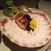 Scallops (£14.50) arrive in sea-shell chariots. Sitting in the centre of the shell like a pearl, a mound of scallop wearing a quiff of quinoa crowned with a golden hibiscus is shaded by a bright green stem of cress.