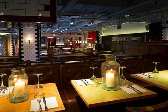 The low-key entrance looks fairly unassuming, but don’t let that deceive you. Venture down this rabbit hole and you’ll find yourself struggling to see whether Bounce actually ends, or just goes on and on forever into Ping-Pong Wonderland. It’s open-plan and absolutely massive, effortlessly accommodating fourteen ping-pong tables, a bar, plenty of seating, and a 95-cover restaurant. The Russell Sage-designed interior is a clever mix of industrial-chic, salvaged vintage, and your high school gym, marrying the somewhat disparate elements of the concept into a single place that looks seriously sporty yet a very attractive choice for a night out.