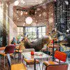Inside, silver birch trees and tree-stump seats bring the feel of a forest to the bar. Meshes of leaves create natural alcoves and nooks for privacy and conversation.