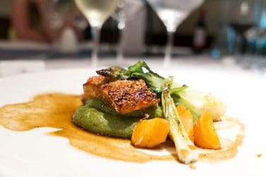 My Dog a L’Orange, which I choose solely because of the name, is tastier than it sounds – a vegetarian sausage crowned with just-melting goats’ cheese and tart little slices of mandarin. It’s gone in seconds.
