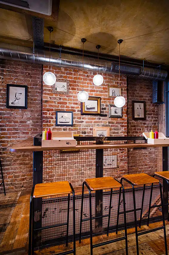 Arriving early meant avoiding a queue, which I only really began to appreciate as we watched a large crowd gathering outside. They were in for a long wait. There still seems to be a huge demand for Bubbledogs, which is testament to its word-of-mouth popularity. On arrival we were offered a choice: ‘you can sit at that table over there, “the ledge” or the bar’. The layout is unconventional and although sitting at “the ledge” (a thin slab of wood unfortunately overlooking the stairs to the toilet) seemed like a quirky alternative to a normal table, we quickly realised our mistake. There was little space to swing a cat, let alone a ‘dog’.