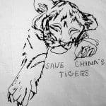 “My inspiration was that we have to save China’s tigers just as we have to protect our children. That is why I draw an unprotected tiger in a childish way, sad and in danger. This baby tiger has to be protected just like human children! I did all my drawing in black and white so children could fill the drawing by coloring with felted pencil.” said Morgan Levy.
