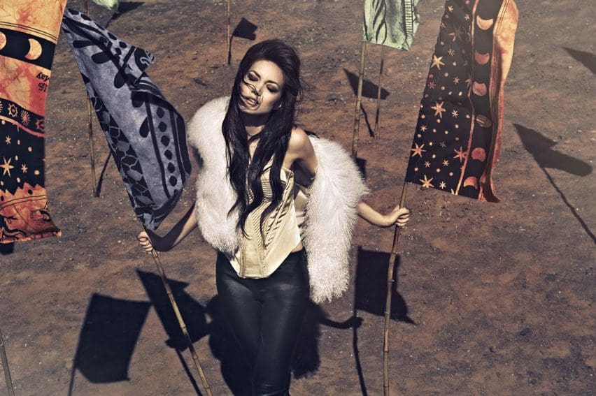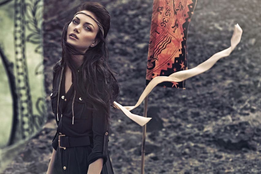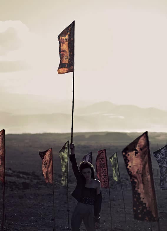 The ancient Buddhist prayers, mantras and symbols produce a spiritual vibration that is carried by the wind across the countryside – silent prayers are blessings spoken on the breath of nature. The imagery shows fashion for a spiritual age, for summer festivals and intense days in the outdoors.