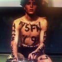Clayton Pettet is naked apart from a pair of black undies; his body is daubed with graffiti saying things like NSFW and ANAL VIRGIN. Now he glares at me from 6 inches away; a fierce, fragile Syd Barrett waif. I can’t quite look him in the eye.