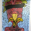 The setting was Theatre Delicatessen on Marylebone High Street, 5 minutes from Oxford Road’s rabid consumerism. The 120 strong queue was made up of 80% Chelsea art students, 15% press and 5% random stalkers. After having our phones and cameras confiscated at the door, we were corralled into a room and left for half an hour to fester in our own dirty minds. A looped video showed Clayton manhandling bananas to Serge Gainsborough’s oral sex anthem Les Sucettes (“I’m never going to be able to eat them again without hearing that song,” someone said after the tenth showing). In between, we listened to hysterical American news reports about the show.