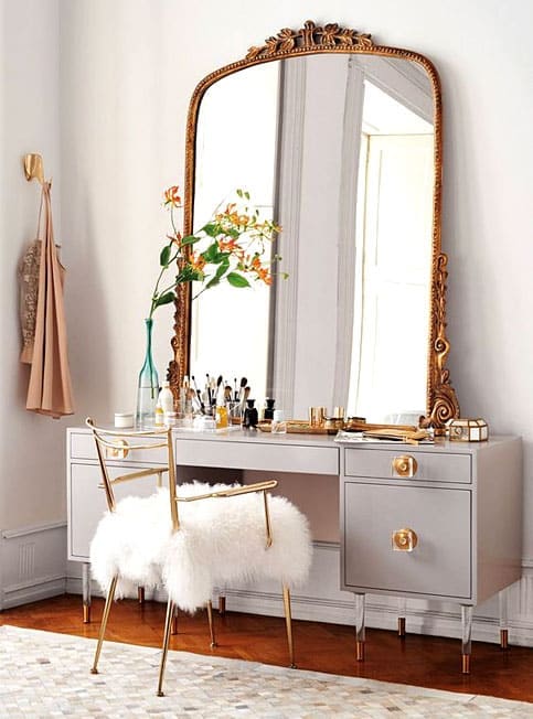 USE A LARGE VINTAGE MIRROR ON YOUR VANITY CORNER