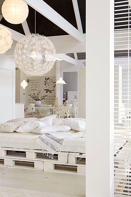 If finding the proper bed with the right size is too expensive and difficult, why not create your own from wooden pallets? You can customize the design and make a bold design statement by choosing such a raw approach.