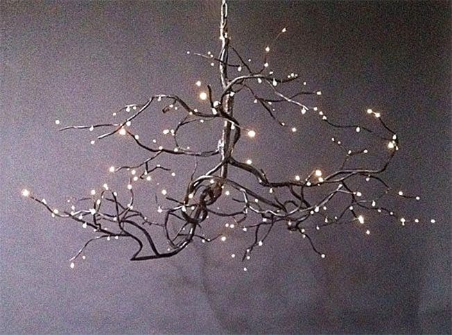 Artificial lighting might come second after natural one, but in the bedroom where we mostly spend our time during the night, ambiental delicate soft light is of the essence. Opt for an impressive chandelier that conveys luxury but is actually rather low on the budget scale. Create your own using an organic branch and some Christmas lights.