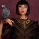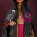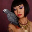 When fashion makes a parrot look grey! In fact, the gossip bird featured in this shoot by photographer, Tory Smith, is an African Grey parrot native to the Western and Central African rainforest. The creative fashion editorial was inspired by being surrounded by her aunt’s African Grey parrots when growing up.