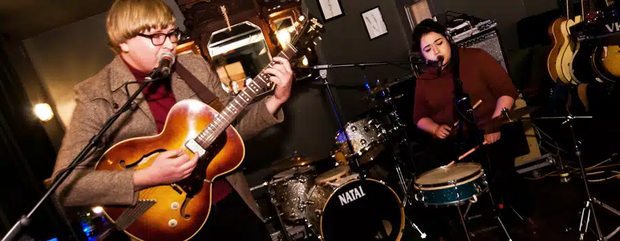 The blonde guitarist raised her Fender in the air, and silence fell over an expectant audience patiently waiting yet animatedly commenting and shouting. The basement at YES isn’t very big. It seemed full before, but now, from the front row to the very back the place is packed. They are an army of misfits, free spirits, outsiders- and we are right there with them. Our blinking, jumping heads bathed in their choreographed voices, throwing their bodies to the floor reminiscent of vampire porn films from 40 years ago.