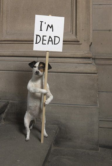Shrigley likes to play on the element of surprise – to shock at first glance. But in this London art show, visitors will be surprised before they even reach the exhibition space. Stepping into the lift, the audio starts, a soft and gravelly American, dripping with sincerity: “Do you remember way back when, in the old days, when we were both monkeys swinging around in the trees and you’d let me pick the fleas off you and I’d eat them? I loved that”.