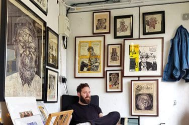 He likes to take the piss, and to piss people off. In one room is a collection of 116 drawings; as visitors take their time to examine the pictures, the sound of his animation ‘Ones’ rattles in the background. A long finger-nailed hand picks up a cup with a die, shakes it, drops the die, and rolls a one. Over, and over again it rolls a one: like he has a fetish for failure.