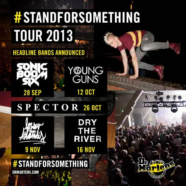 Dr. Martens have confirmed this week that four of the UK’s most exciting live acts, Dry the River, Spector, Lower Than Atlantis and Sonic Boom Six will join Young Guns on their #STANDFORSOMETHING tour this Autumn.