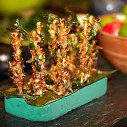After the first couple courses, we’d become somewhat inured to the various miniscule creatures being plated up and served to us. The tempura grasshoppers certainly didn’t lack for crunchiness, but missed the meaty-flavour of the traditional prawn – I prefer the accompanying tempura vegetables, which showcased the delicately spiced batter more clearly. My partner describes the insect miang as ‘a bit like an insect kebab’. Toasted coconut, ginger, lime, peanuts, shallots and yes, buffalo worms were wrapped up with various other ingredients in a betel leaf. Rolled up like an expensive Cuban cigar of tropical flavours, we hungrily crunch through them.