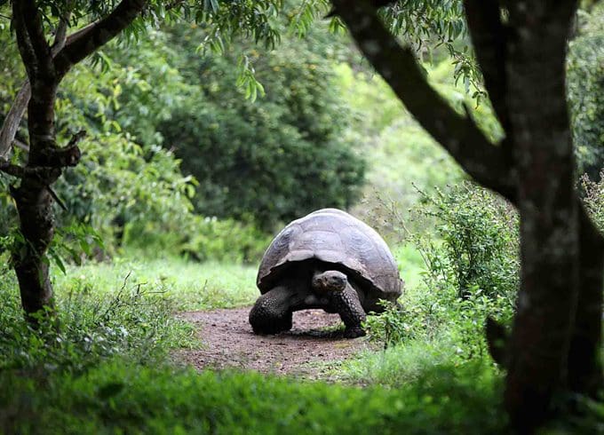 Most routes begin at the Santa Cruz Highlands, where you can travel through the various Galapagos ecosystems like agricultural areas, thick rainforests and the mountains. The highlands are iconic for allowing visitors to see the famous Giant tortoises, but also appeal to bird-watchers, as almost every endemic species can be seen here. Other Santa Cruz visits include Dragon Hill and Bachas Beach, nesting grounds for the native land iguanas and sea turtles. From the beach, you can also see the wreckage of barges from the World War II-era United States Naval base on Baltra Island.