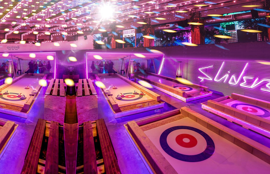 At Queensway Ice Rink, there’s a twist on the sport of curling: jump onto oversized rubber doughnuts and skedaddle as fast as you can across the ice, 20m, as close as you can get to the bullseye.