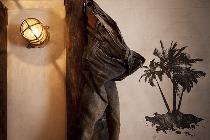 The name ‘Flying Horse’ derives from the name of an old family pub from David’s childhood and this fact alone suggests that this is a wholesome and well natured brand. They only use ethical methods for production (although we did have to get this piece of information out of him, as the brand doesn’t use this ethical front as a means for branding or preach it to their customers, they do it simply because they want to and they feel it is best) and with one of the co-founders, Sanjay Madan, running a factory in Thailand and having an existential knowledge of denim passed down through generations, they can experiment with different surface techniques and have fun with the brand.