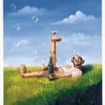 This stylistic range in turn evokes a whole barrage of feelings on the part of the viewer: many works, like ‘Portrait of a Lady’, are stunning in their vibrancy, whilst others such as ‘Uncle Joe’ are sickeningly funny in their brazen depiction of twenty-first century life. Despite being rendered through seemingly alienating, puckered faces and abstract block-like figures, the work effortlessly unveils the complexities of the mental state: Condo captures emotions that are painfully recognisable within ourselves, as he urges us to follow his daring vision and confront human feeling at its most raw.