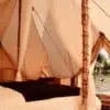 This little paradise is situated in the quiet, isolated corner of a campsite flanked on two sides by pine trees, and a small forest. The bedrooms are two sizeable, canvas teepees that evoke the word ‘glamping’, but, and I want to make this clear, not in the ‘I’ve paid £200 for a teepee and an air mattress at a wedding and I’ve woken up in the middle of the night to find that most of the air has gone out of the mattress, and because I’m heavier I’ve sunk to the bottom while my girlfriend has rolled onto me like an immobile and surprisingly heavy oil slick’, sense. They have plentiful standing space, are larger than any room I’ve had back in London and have actual double beds with proper, comfy, cosy duvets and pillows so deep you get lost in them.