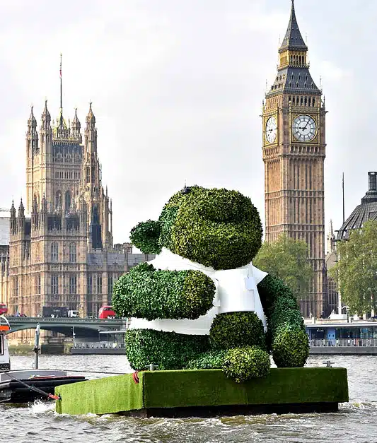 Well crowds of Londoners and tourists alike actually got to see this and you can see their reaction in this short video. The idea was dreamt up by those fine purveyors of tea at PG Tips who have taken it upon themselves to energise Londoners. The monkey was actually made from 100 thousand tea leaves and it jolted many a Londoner and tourist into life as it made its way down the Thames.