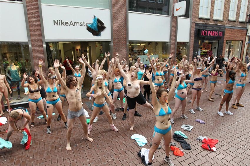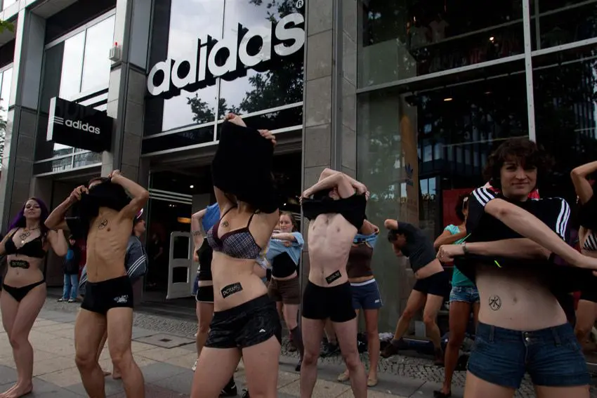 As part of the Greenpeace “Detox” challenge, on 23 July, more than 600 people joined Greenpeace activists outside Nike and adidas stores in 10 countries to set the record for the world’s largest simultaneous striptease. Meanwhile thousands of people have added their names to an online petition that challenges the CEOs of Nike and adidas to use their power and influence to tackle the urgent issue of toxic water pollution and convert their words into actions.