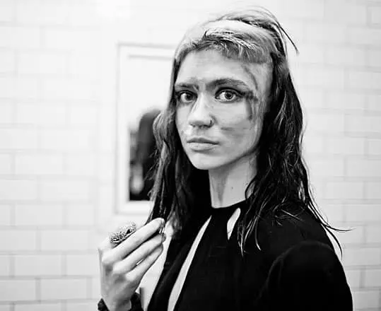 Grimes is a vessel filled up with the drips from an apothecary of genres: rave, hipster, muso, seapunk, indie (sch)mindie, industrial, soft goff. And a growing contingent of ‘straights’. In this dolly mixture crowd, life is framed through the swinging radius of a fleshtunnel, and lit with the stardust sheen of Instagram. ‘One Size Fits All’ says the merch sign next to Grimes’ Pussy Rings; one icon fits all our needs.