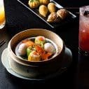 We visit on a Sunday evening, and it’s packed. It’s the debut of the new dim sum Sunday menu. It’s £48 for six courses, with a cocktail to start and a pot of herbal tea to finish. If that sounds like a lot, it will feel like a bargain by the end. Especially when compared to the wine list (most expensive bottle: £2, 199).