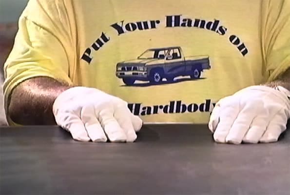 This is Hands on a Hardbody, a feature-length documentary directed by S.R Binler, originally released in 1997 and which follows the 1995 Texas competition of the same name, the object of which is deceptively simple: keep one of your hands palm down on a brand new pick-up truck for the longest amount of time and you get to walk away with the truck itself as your prize. What complicates this seemingly straight-forward goal is the other 21 people also standing around the truck, each of whom is just as determined to win as you are.