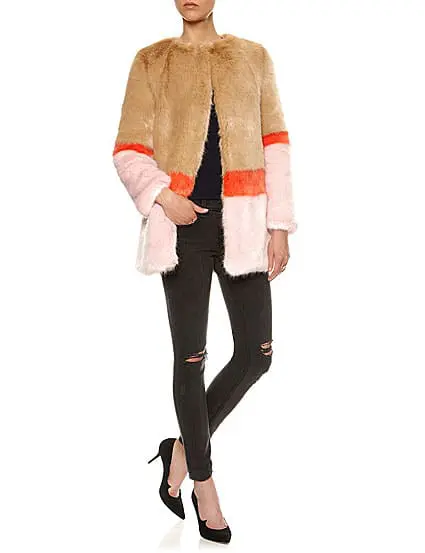 Her love of art strikes you as you feast your eyes on any item from the latest Shrimps collection. There a knowing sense of fun and a slight bit of cheek about these designs and their eye-popping colour combinations. The texture of the faux fur adds that sexy, luscious edge. The quality of the man-made fur is so high that it is now being used in its own right as a luxury fashion material and with Shrimps, Hannah celebrates the fact with the neon colour clashes so beloved by her fans.