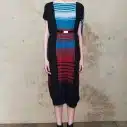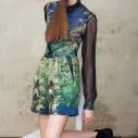 Shifts feature a multitude of fabrics including soft and supple leather raglan sleeves against tweed with a flash of yellow lining turned up at the ends. Digital prints include a bundle of geometric lines and shapes, including stars, entwined with little alien creatures with robotic arms. Could this be the Harnett&Pope mascot? This particular prints proves a favourite of the girls as it features on waist pleated shorts and crops up again on the collar of a silk blouse.