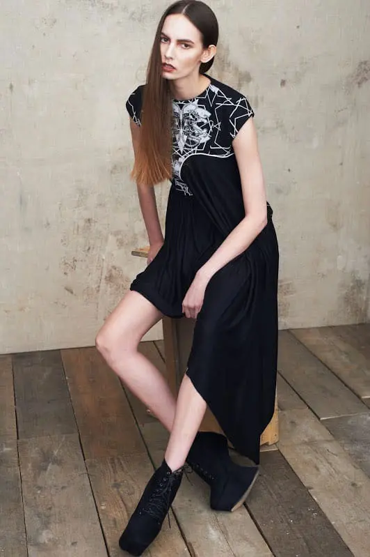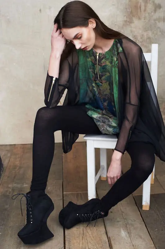 You get a feel that the girls have really had fun with this collection and experimented with a lot of different production techniques, fabrics and styles. Yet, the garments are still very wearable and unique, heck you could wear the leather harness over their floor length chiffon over coat because this is Brick Lane after all.