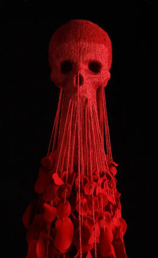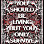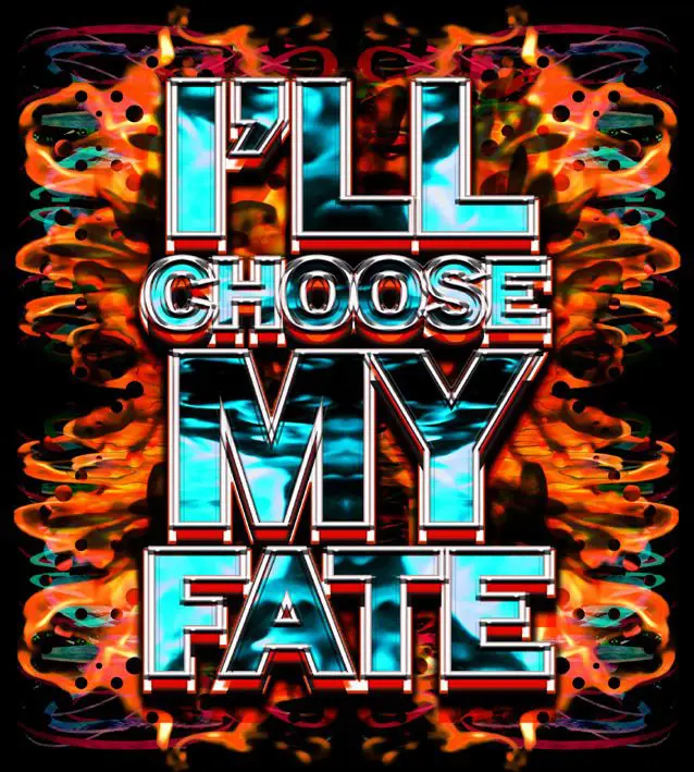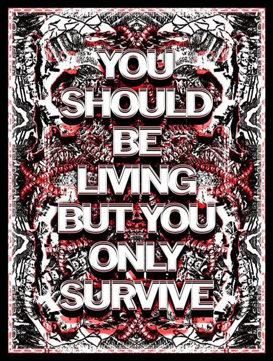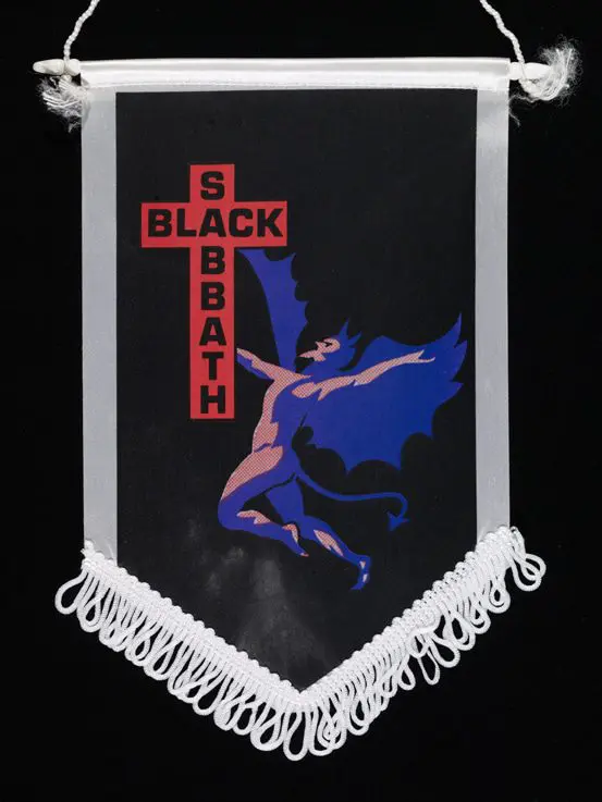 The power of the pithy epithet and the isolated lyric are also important to Mark. Much of his work consists of colourful banners and posters, embossed with a particular quote or lyrical line, such as “you should be living, but you only survive” or “we want answers to the questions of tomorrow.” A banner made especially for Home of Metal features the adamant “I’ll chose my own fate” taken from the lyrics of a Judas Priest song. The banners are the result of “disconnecting an idea from its original place,” says Mark, “so if you have something that is a Heavy Metal lyric or a Britney Spears lyric, it sounds like a philosophical text, when you take it away from the context of the music.”