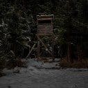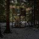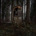 A Hochstände (also known as Ansitze) is a wooden structure used by hunters to spot and hunt their prey, usually deer. In this photographic series the hunter and prey are both absent. We see the structures in silence looking at odds with their forest surroundings.